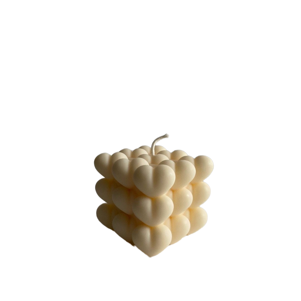 Con su diseño cuadrado y encantadores corazones decorativos, esta vela no solo ofrece una experiencia visualmente atractiva, sino que también infunde tu espacio con una energía llena de afecto y ternura.