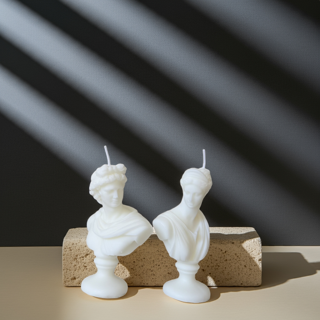 Forma: Bustos inspirados en esculturas clásicas, representando la armonía entre lo masculino y lo femenino
