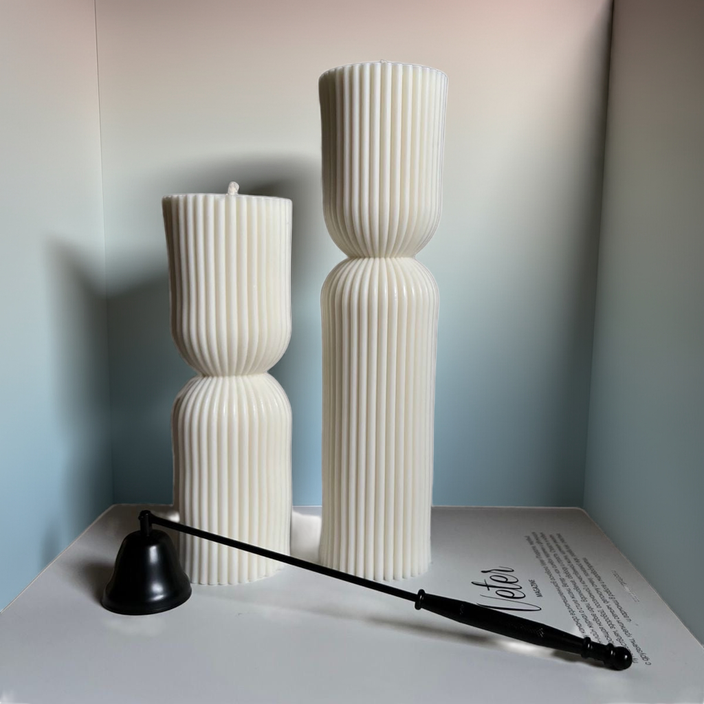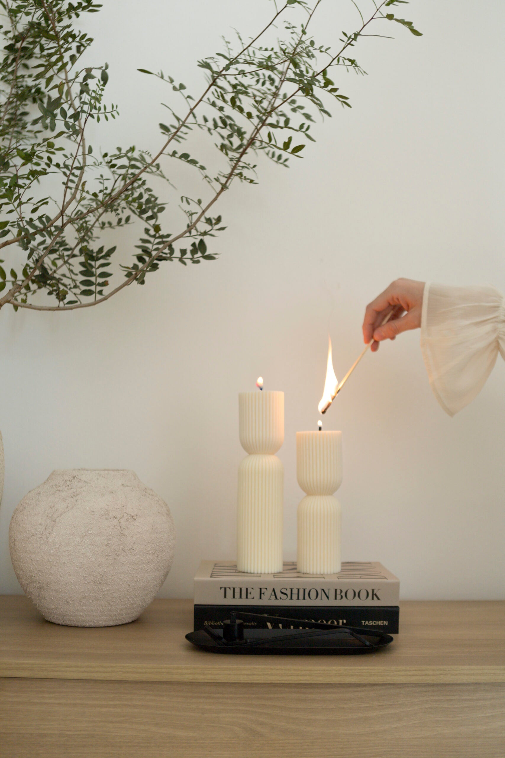 Transforma tu espacio con el sofisticado Set Barcelona, que presenta dos velas elegantes, una de tamaño grande y otra más pequeña, adornadas con un diseño de estrías verticales. Inspirado en la vibrante ciudad de Barcelona, este set captura la esencia de su arquitectura única y su influencia en el mundo de la moda y el diseño.El Set Barcelona encarna la fusión de elegancia y modernidad que define a la ciudad. Barcelona es conocida por su capacidad para combinar tradición y vanguardia, y este set refleja esa dualidad. Las estrías verticales recuerdan a los icónicos edificios de la ciudad, mientras que el contraste entre las velas grandes y pequeñas simboliza la diversidad y la rica mezcla cultural de Barcelona. La grandeza de la vela más grande, junto con la sofisticación de la más pequeña, representa el dinamismo y la innovación que hacen de Barcelona un referente global en moda y diseño.