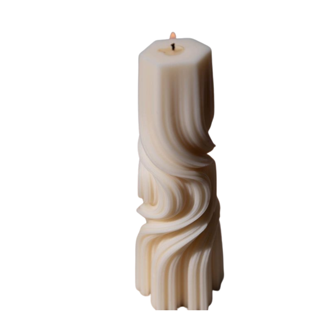 La perfecta armonía entre la modernidad y la tradición, representando la belleza de lo efímero y la constante evolución. Las curvas suaves que adornan su superficie evocan la delicadeza de la seda japonesa, mientras que su forma sólida y bien definida refleja la estructura y el orden que caracterizan a tokio. Esta vela es un tributo a la capacidad de encontrar calma en el movimiento y belleza en lo inesperado, recordándonos que la vida es un viaje continuo de descubrimiento y renovación.