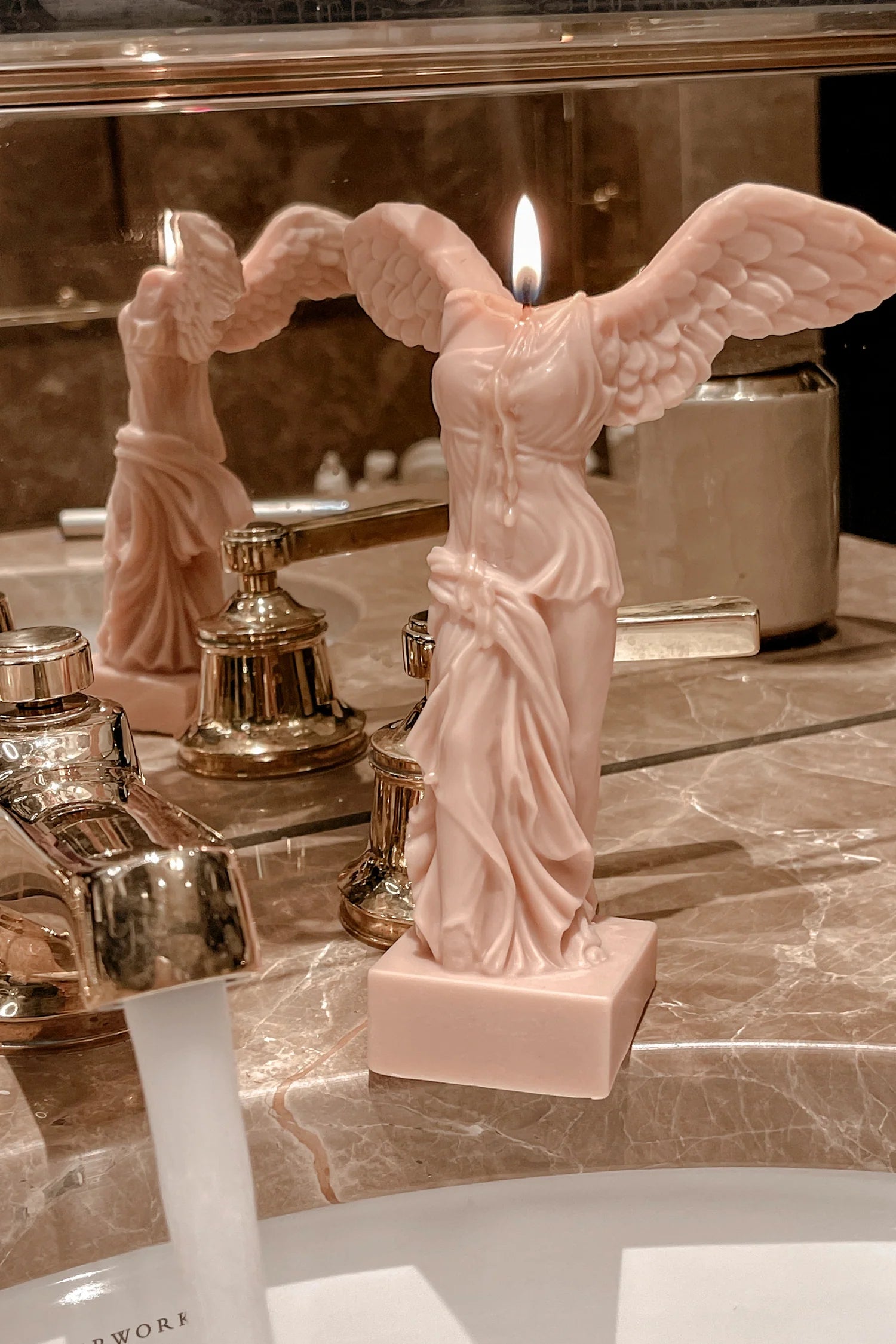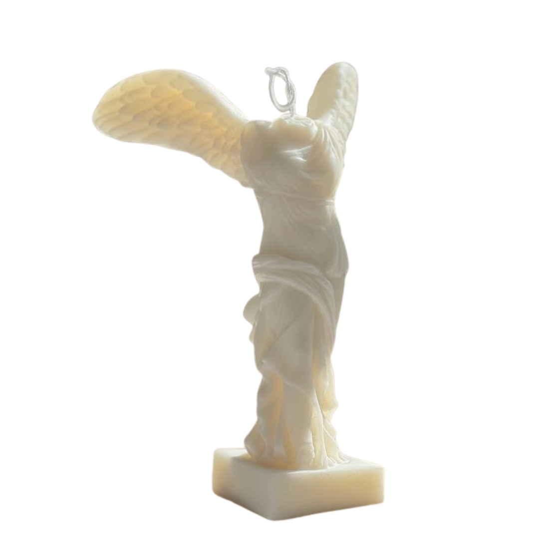 La vela Victoria es una manifestación artística de la pureza y la fortaleza, encarnando la imagen de un ángel victorioso con sus alas extendidas. Con un diseño que captura el dorso de un ángel, esta vela es un símbolo de protección, triunfo y esperanza. Sin necesidad de un rostro, la figura se centra en la majestuosidad de las alas, que representan la capacidad de elevarse por encima de los desafíos y alcanzar nuevas alturas.